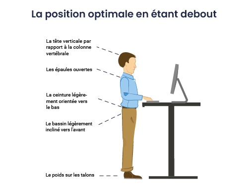 Toute cette activité ne sert à rien si vous êtes assis trop bas, si la table est trop haute ou si l'écran est trop bas. Seulement si votre environnement de travail est adapté à l'ergonomie de votre corps, vous pouvez vraiment vous asseoir sans douleur et en bonne santé.